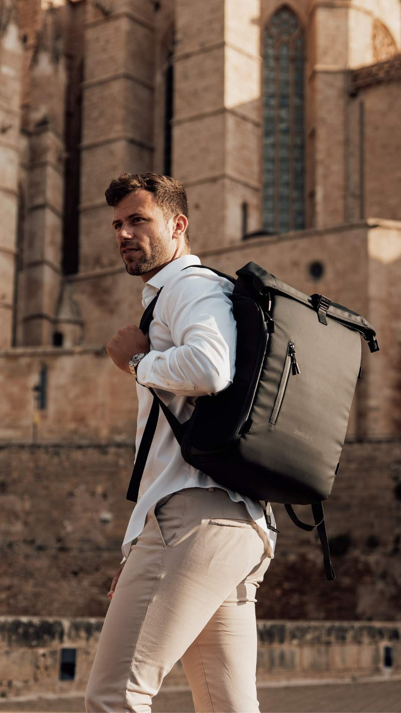 The Rolltop er en praktisk ryggsekk med justerbart volum, som er designet for å gi deg kontroll i hverdagen. Den har smarte funksjoner og en stilren design, og passer like bra på kontoret som på reise.